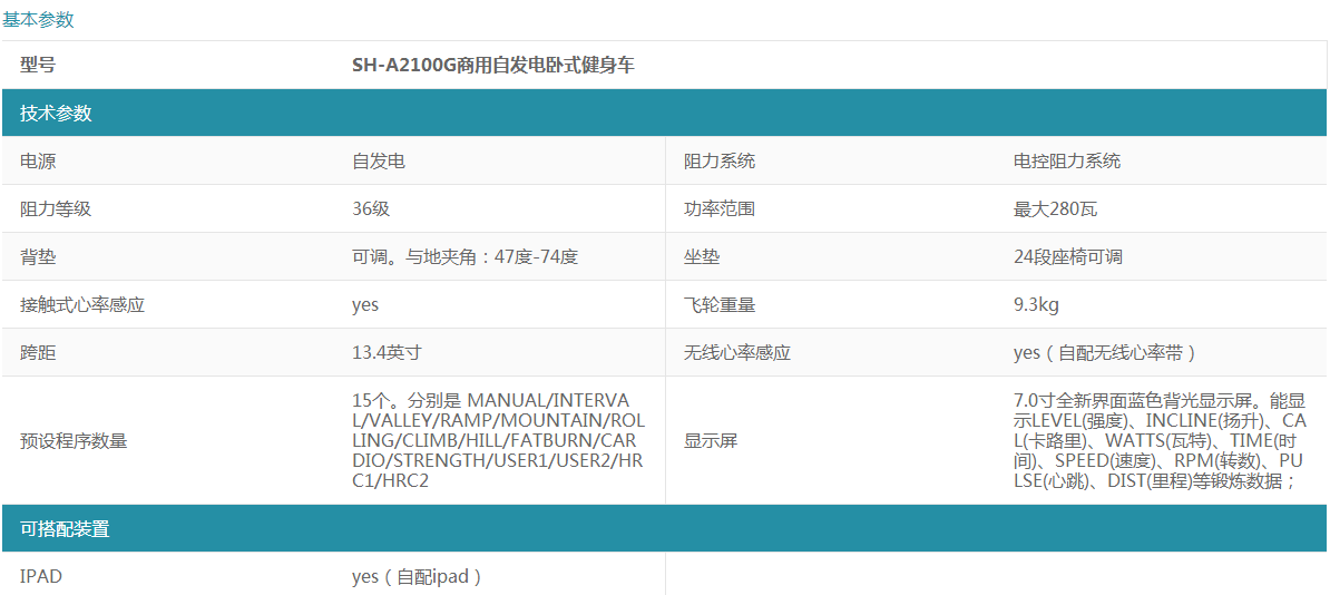 SH-A2100G 臥式健身車